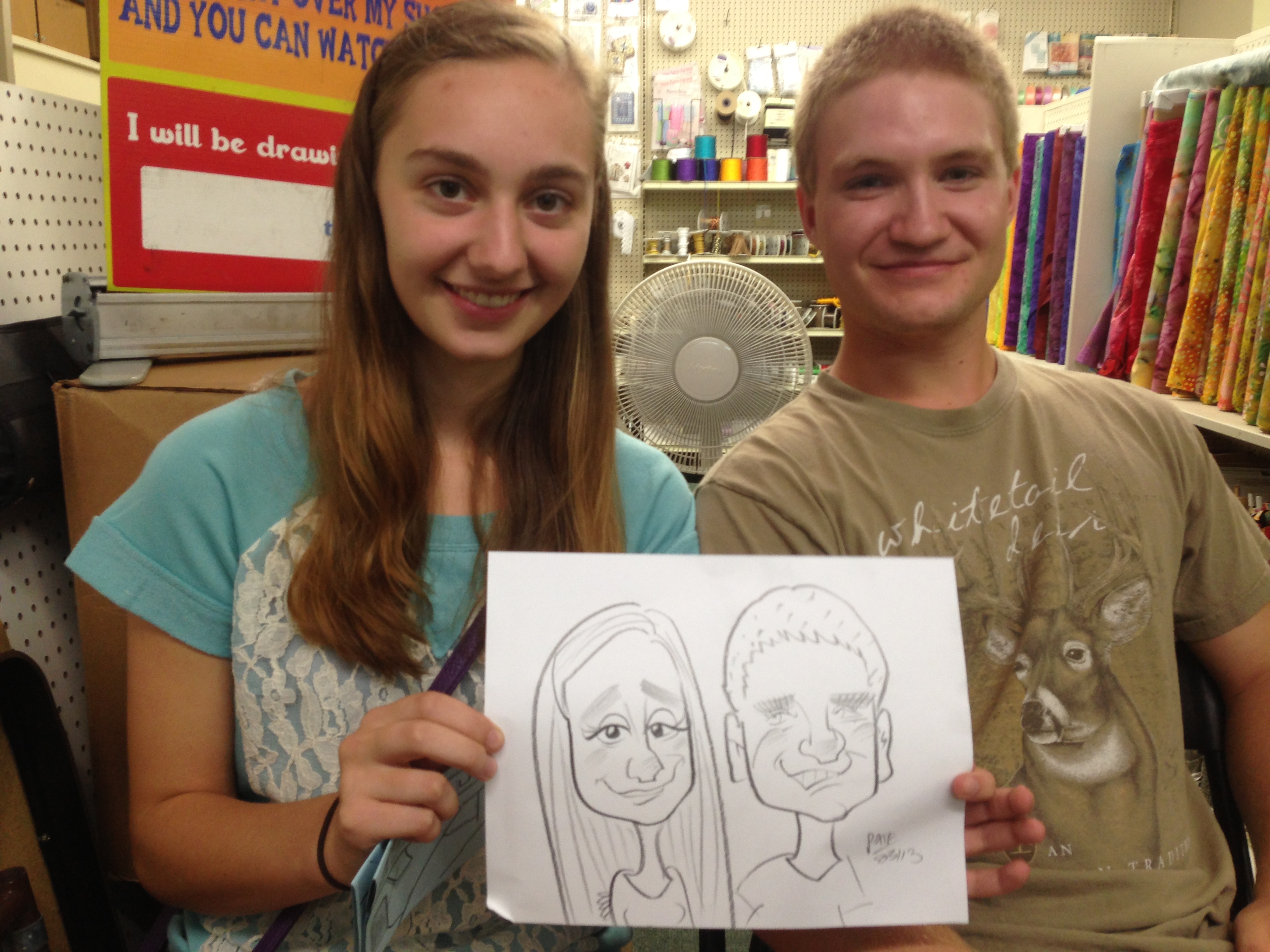 When I got home I drew at a wedding at the Western Reserve History Center, which was a pretty cool venue. The bride wanted the copier and most people obliged and made copies for the bride and groom and left them beside the coper for them after writing a little note on them. I draw at a lot of weddings, which is what I did most of the summer. I can draw around 200 people in 3 hours.