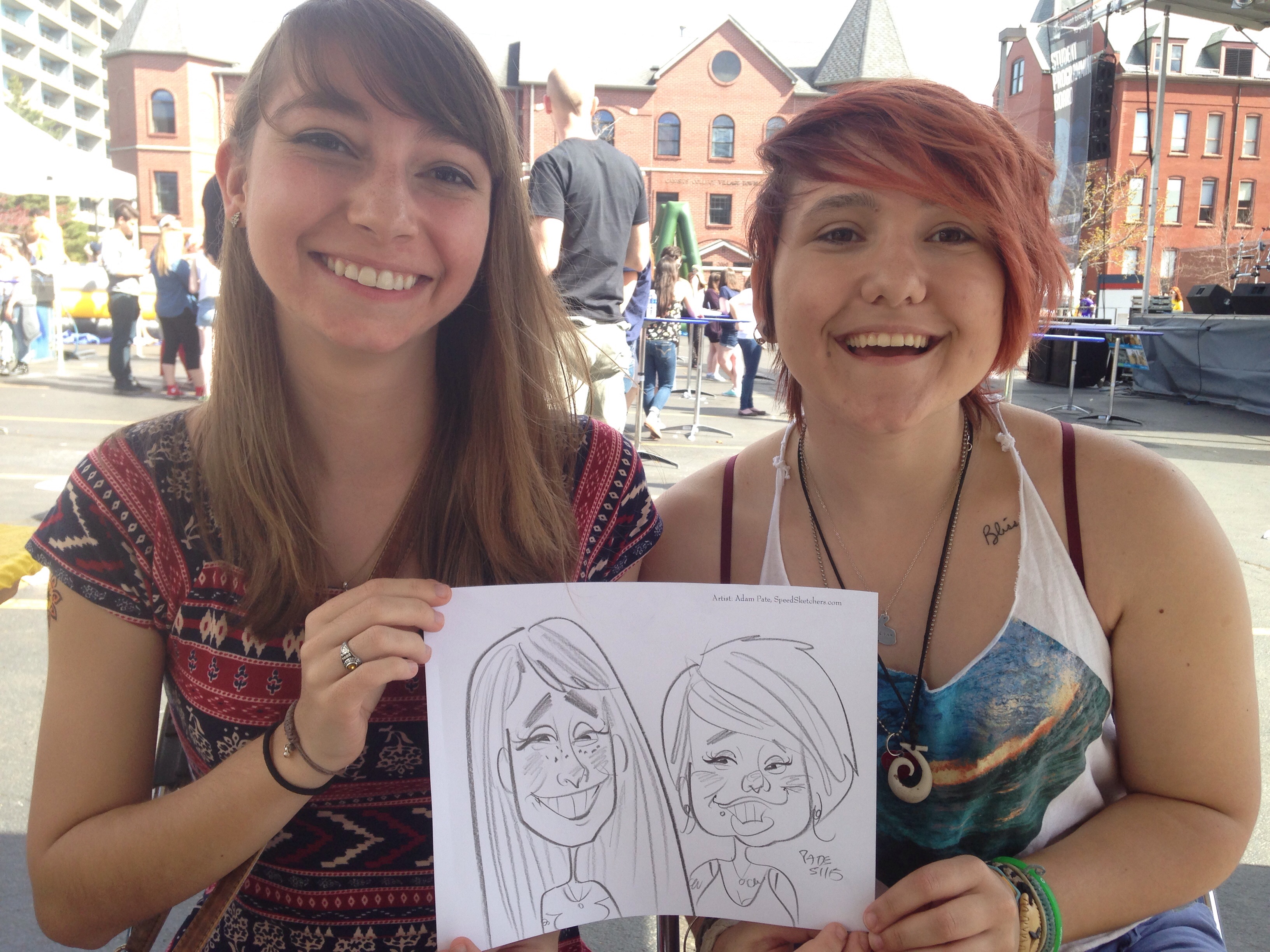 Speed Sketchers Caricatures is a group of specialized speed artists that I have put together and am training to do exactly what I do at gigs, nationwide. This is kind of a big deal for me because I am the only one who does what I do. I have (thankfully) been in demand and have one dedicated back up artist, but sometimes my schedule is just too much for me. I have chosen artists regionally so that everyones time gets used efficiently. (and nobody spends 3 full days traveling to and from a single gig because it’s so far out of the way) We can draw together at some gigs and cover for each other. Also important to note is that the more people that can do speed sketches, the higher the demand for them will be!