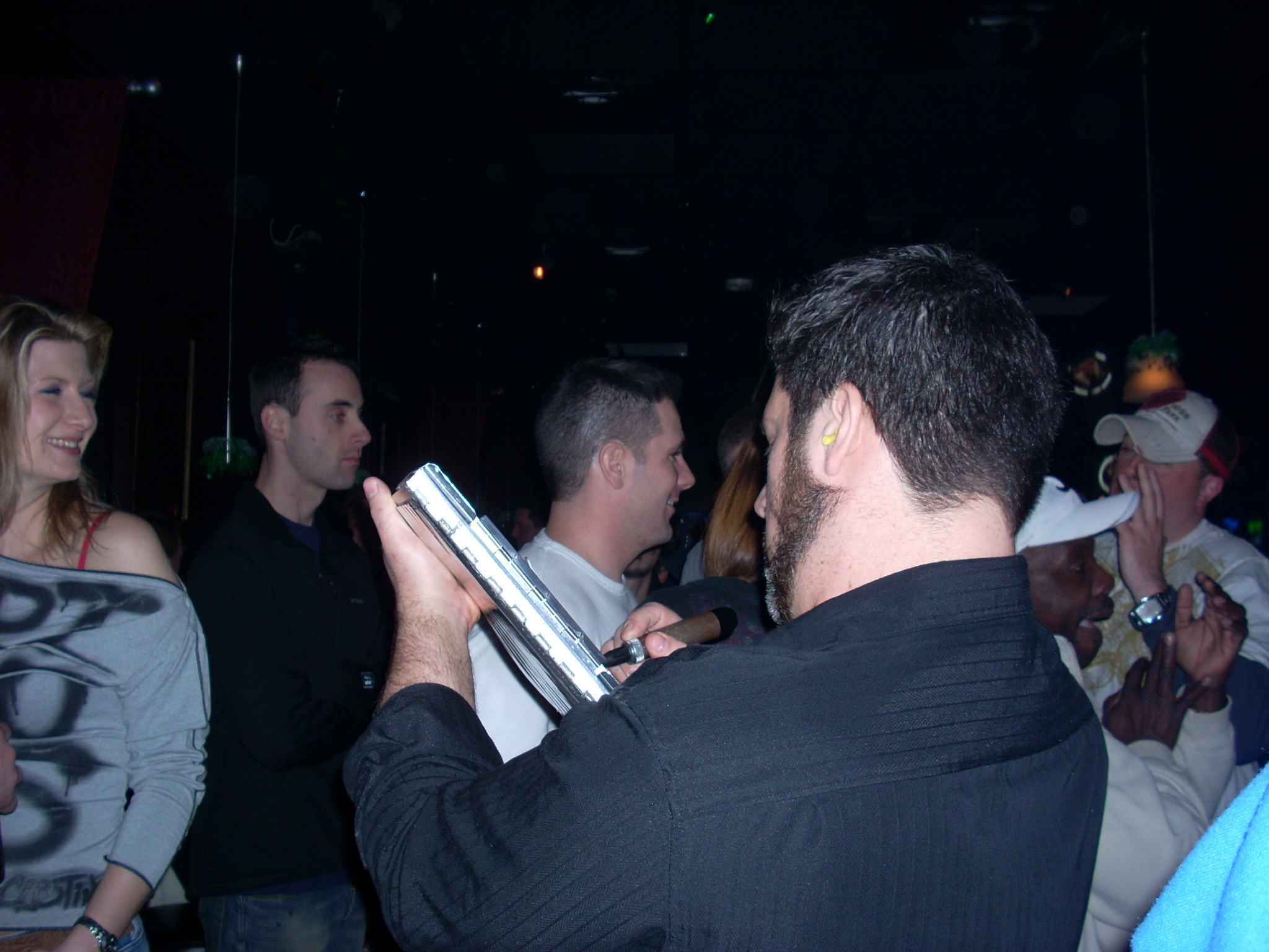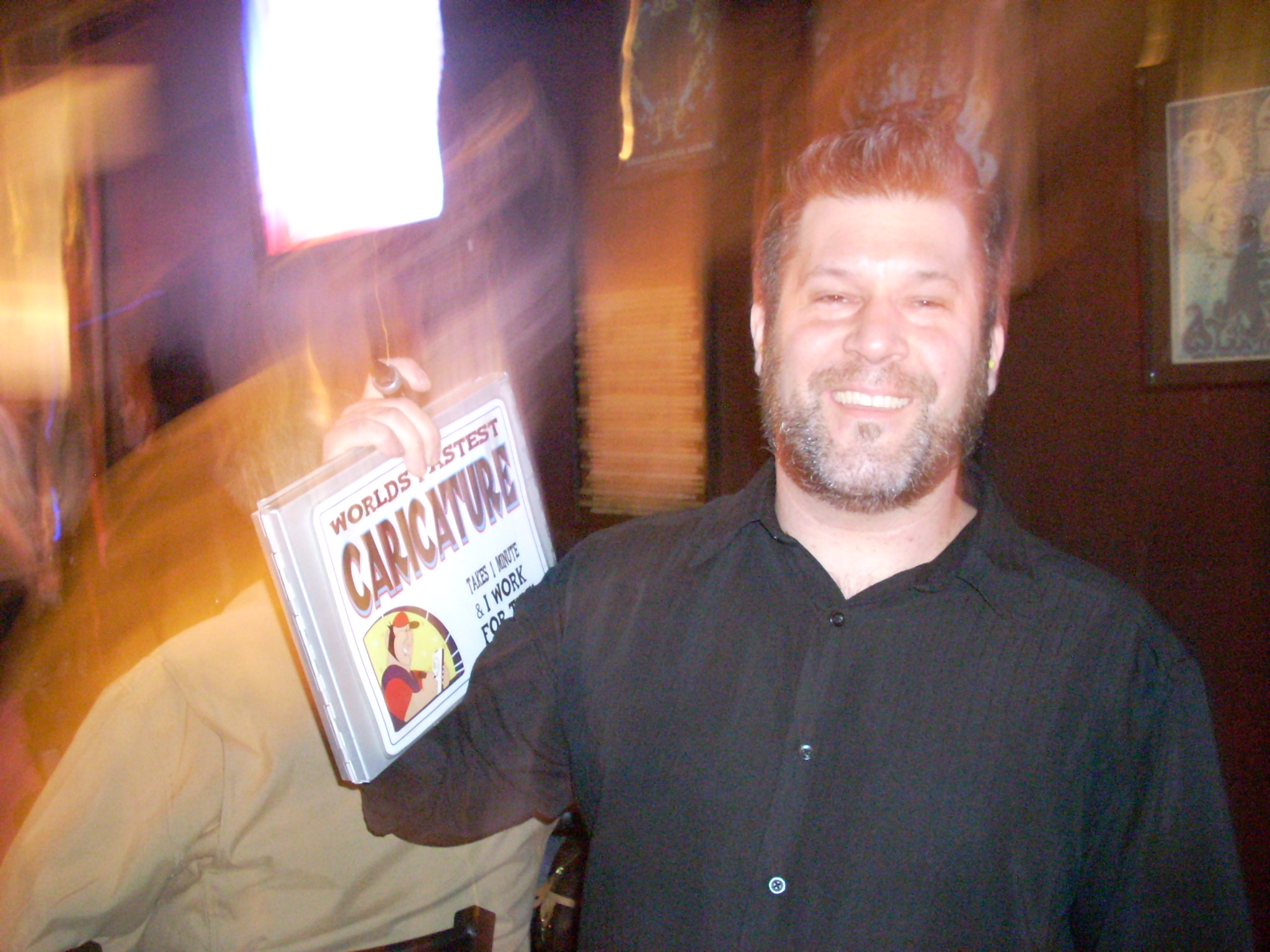 Felt GOOD! Wasn’t all that busy, surprisingly but I did well enough. No complaints! People were nice too. The first person I saw yelled across the bar to me because he recognized me from up at Put In Bay and came over to tell his friends to get a caricature. Yep! Jumped right in!! Took a few photos. None turned out great but Here are two that weren’t horrible. The first photo does neither the girl or the drawing justice. The flash messed it all up. (and completely washed out the other drawings I took photos of tonight) The second one is of a guy with 2 girl’s butts. The one on the left was LOVING the way I drew her pooper in the drawing. The girl on the right, not so much. It was fun and I thought the girl’s reactions were hysterical. I guess this is why the “Butt Sketch TM” guy’s picture’s are so corny and lame, lol! Who cares? Anyways, got to use my new credit card swiping thing to collect a tip tonight which was awesome! I’m really glad it has become so main stream too. Can’t imagine trying to convince someone it’s legit. I did have some dipshit ask me to show him samples before he would get a caricature as if I was at a freaking job interview. That one still creeps me out. I would just assume that anyone who doesn’t understand that I don’t keep them -I give them away- and don’t carry around samples for people like him to judge me on wouldn’t appreciate a caricature in the first place so fuck em. Anyhow, it’s late and it’s gonna be a long weekend. Have fun, be safe and try not to get arrested!